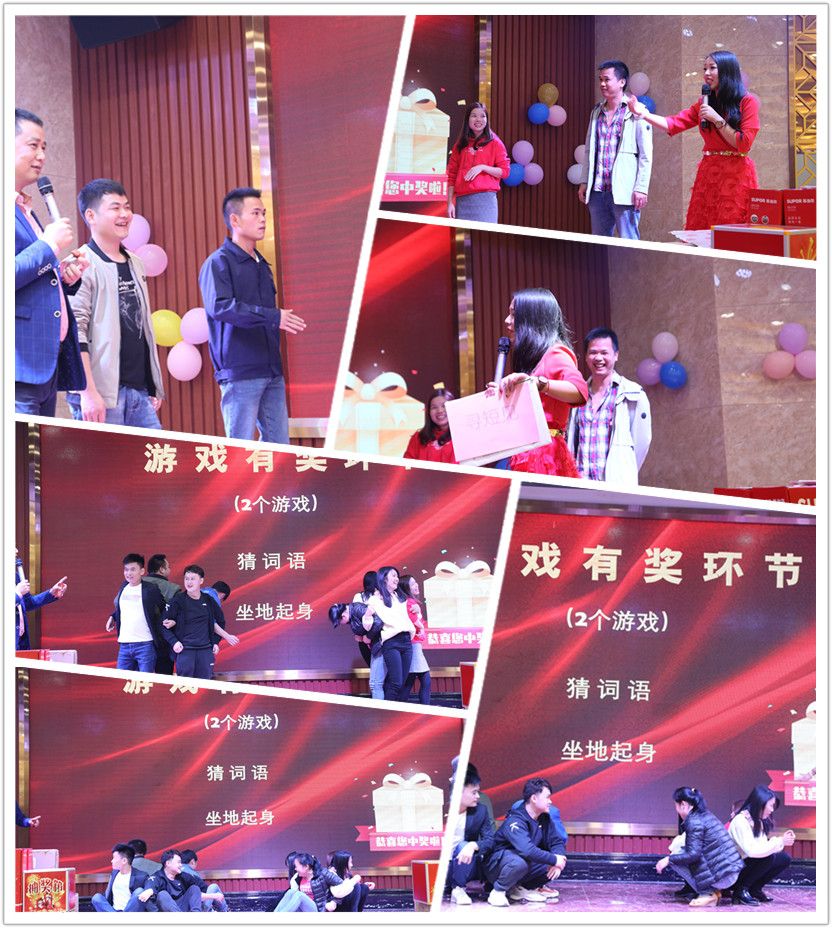 接下來(lái)是游戲環(huán)節(jié),猜詞語(yǔ),坐地起身游戲,大家全情投入,歡聲笑語(yǔ)。